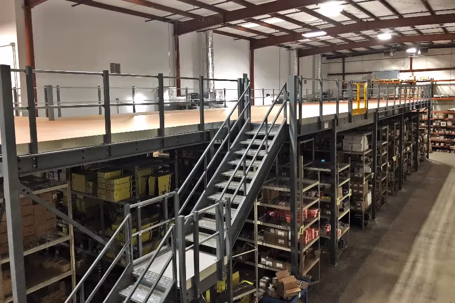 The Mezzanine Company worked closely with CED Richmond to come up with a design for a storage platform mezzanine that would serve their needs. We proposed an approximately 2,450 square foot platform. The mezzanine included (1) straight run OSHA staircases, with a mid-landing, for employee access.